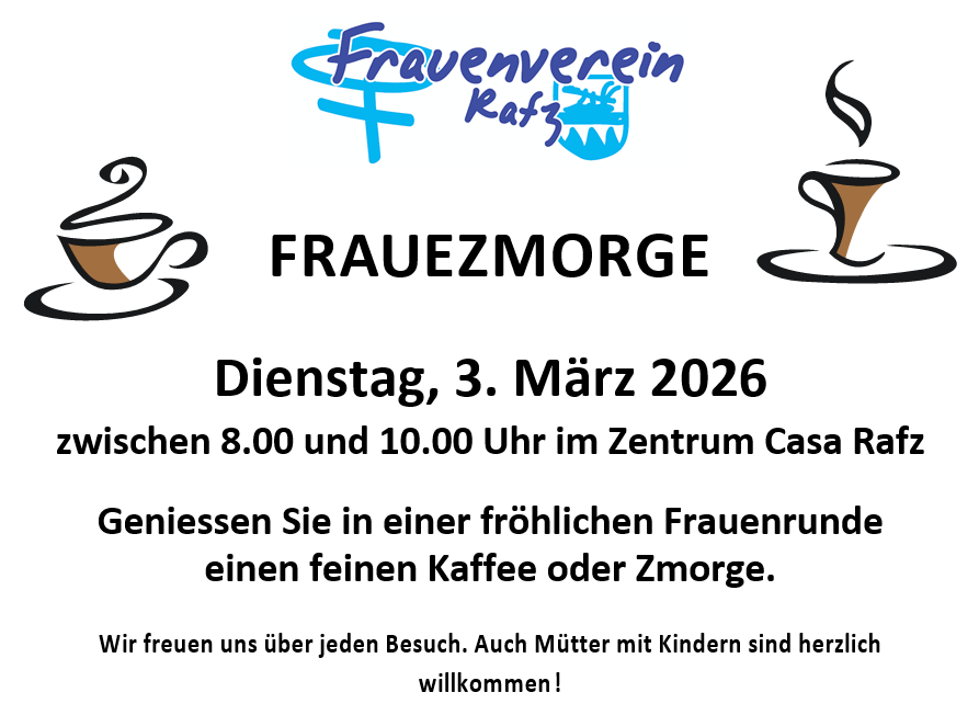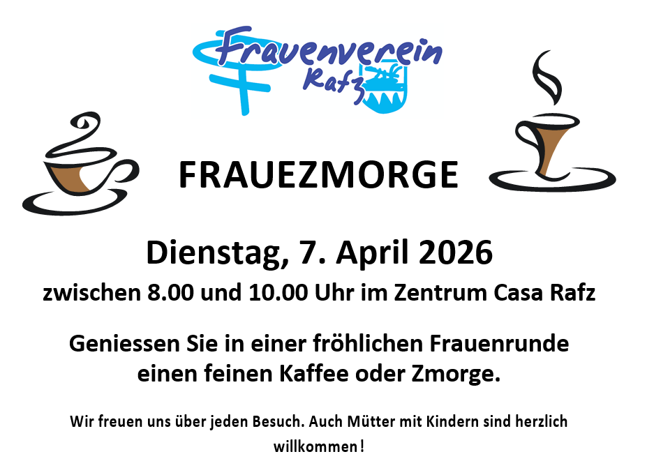 - Jeden 1. Dienstag im Monat "zmörgelen" wir ganz gemütlich mit Kaffee und Gipfeli beim Frauezmorge.